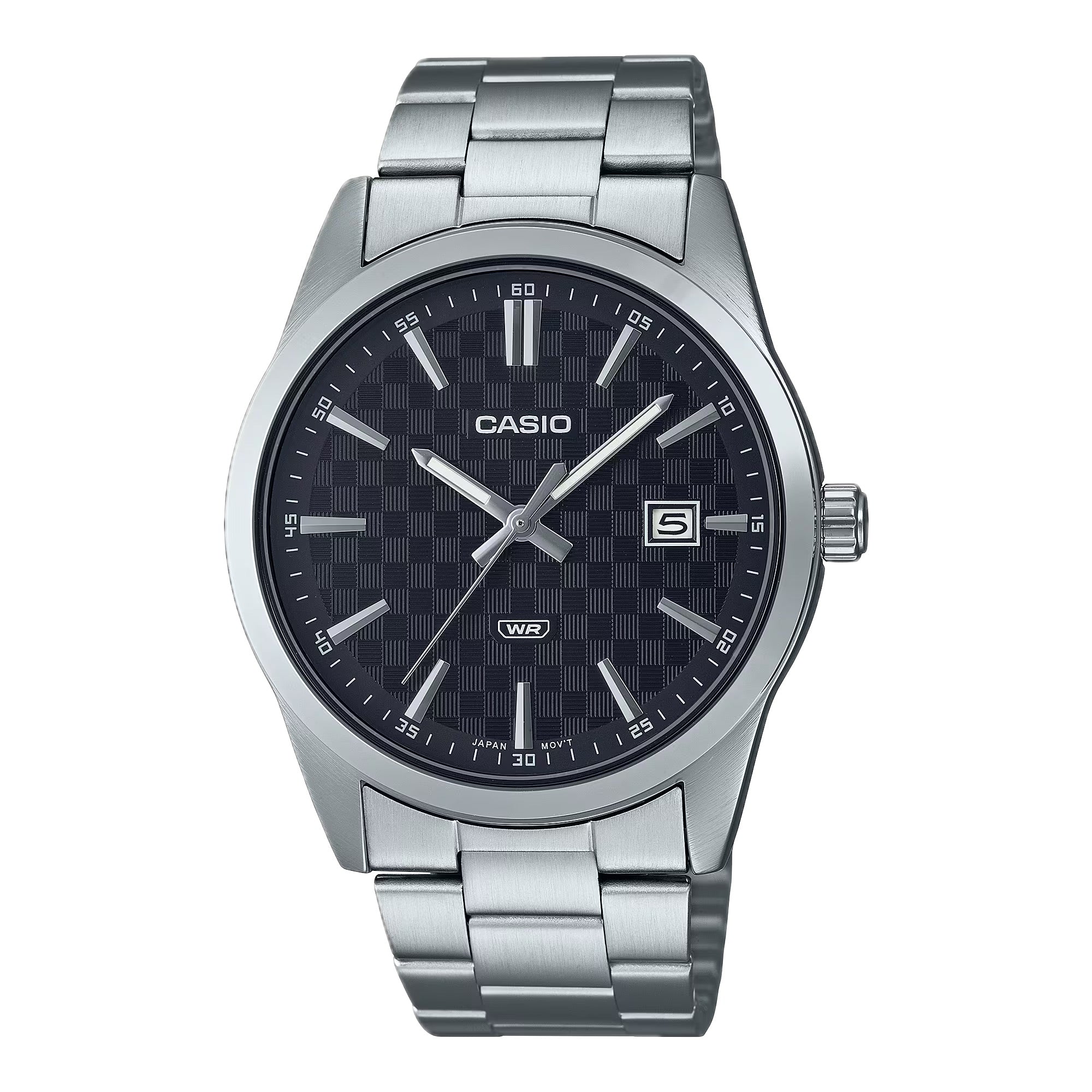 Casio MenÕs Black Check-Pattern Dial Stainless Steel Bracelet Watch - MTP-VD03D-1AUDF
