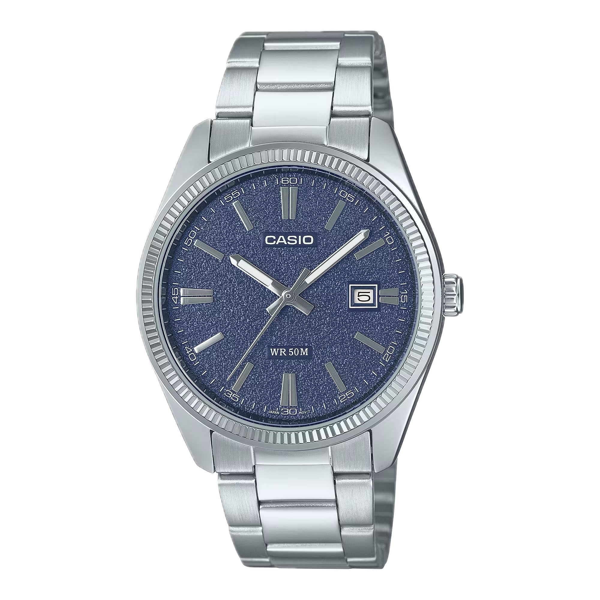 The Casio MTP-1302DA-2A1VDF is a refined analog watch crafted for men who value a sleek design paired with reliable everyday wear. It features a matte blue dial housed in an ion-plated stainless steel case and paired with a matching two-tone stainless steel bracelet for a polished and cohesive look. With date display, mineral glass coverage, and 50-meter water resistance, this timepiece blends classic aesthetics with practical durability.