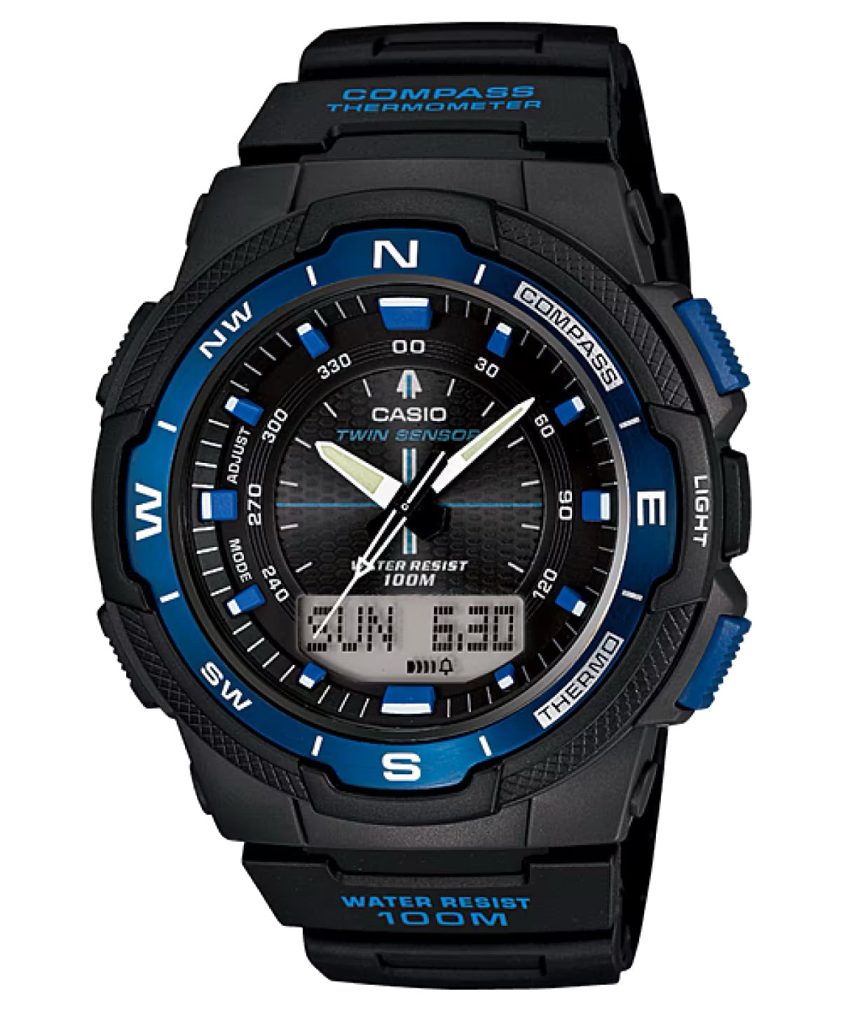 Casio Men's Twin Sensor Digital Black and Blue Compass Watch - SGW-500H-2BV
