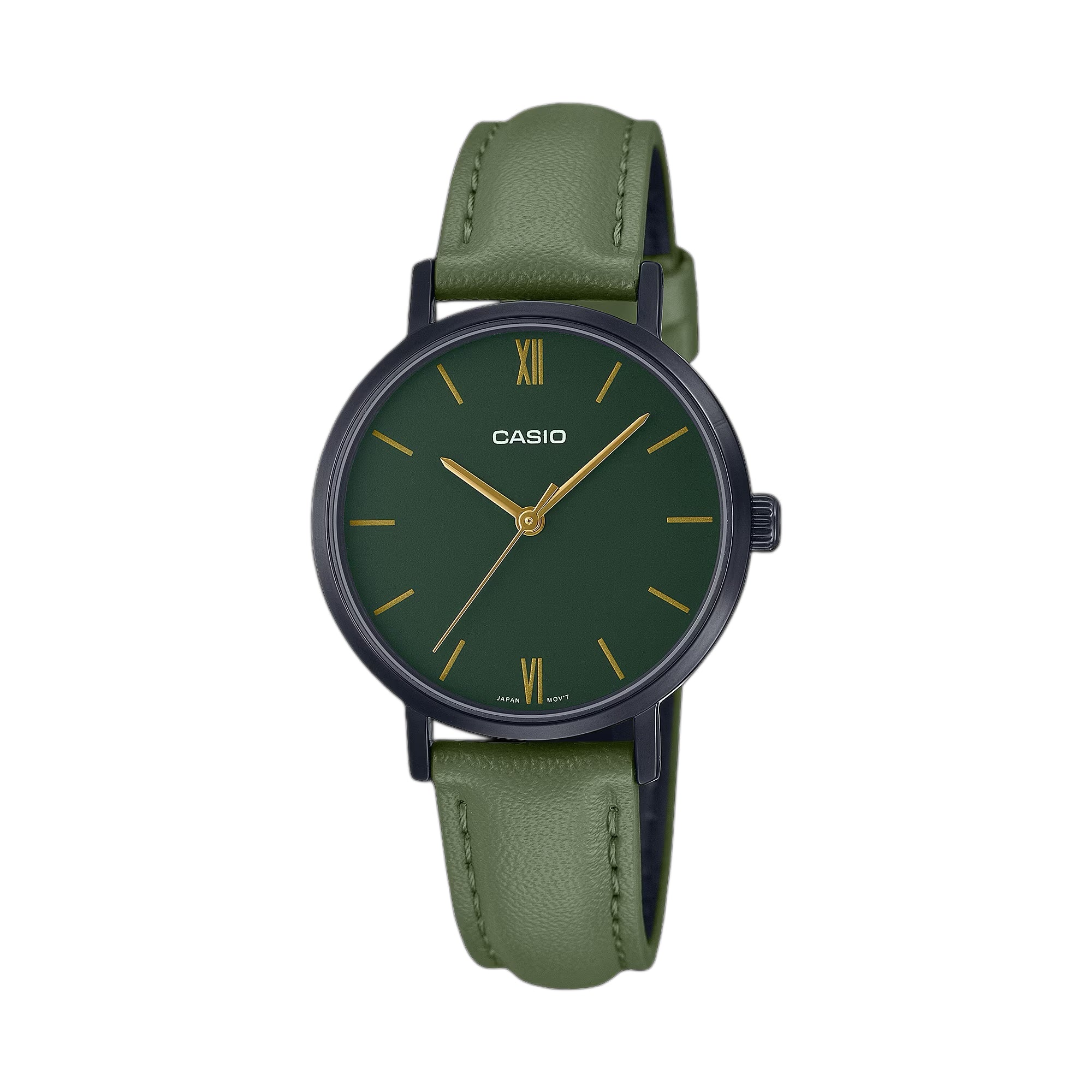 Casio WomenÕs Black Case Green Dial Leather Strap Watch - LTP-VT02BL-3AUDF