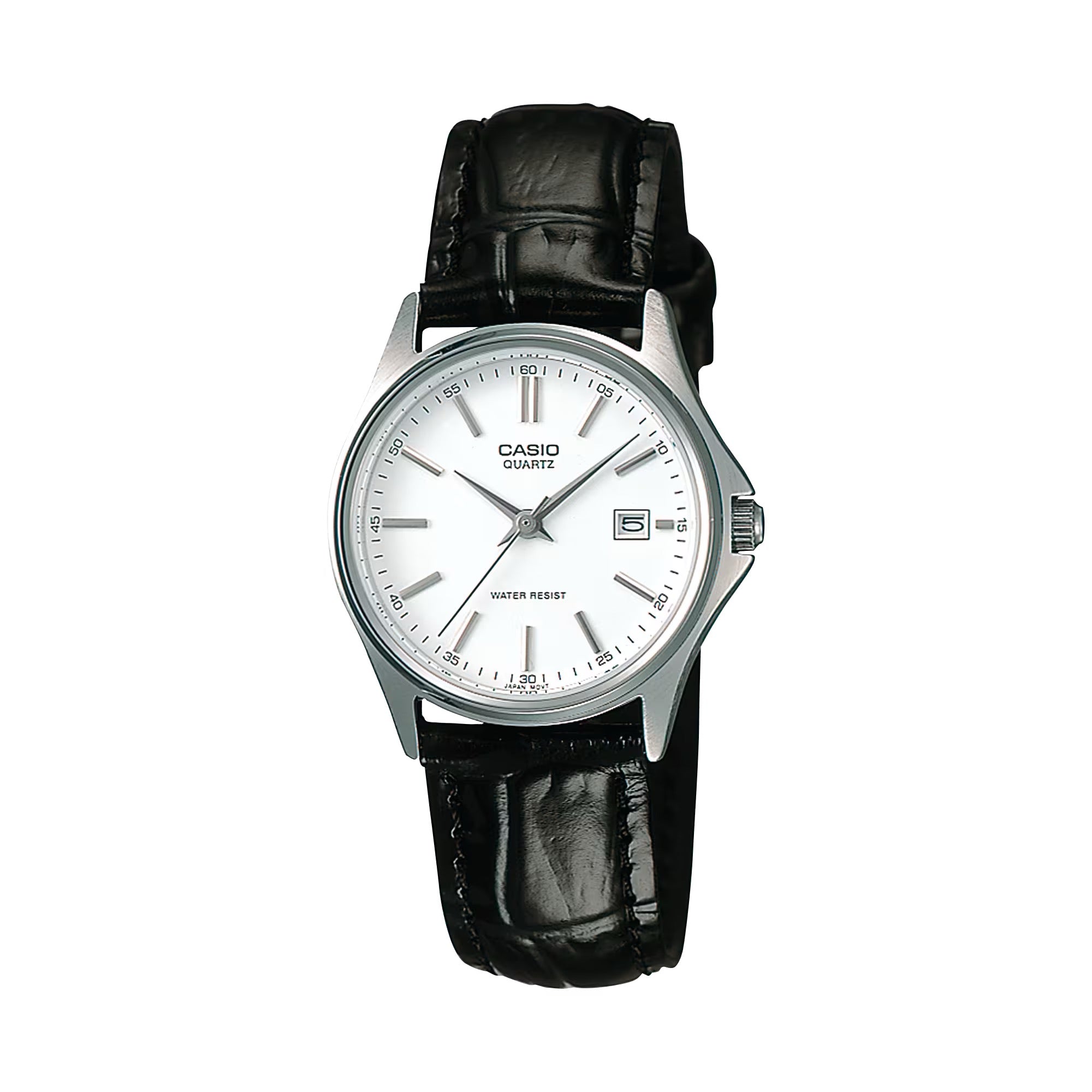 Casio WomenÕs Black Leather Band Silver Dial Analog Watch - LTP-1183E-7A
