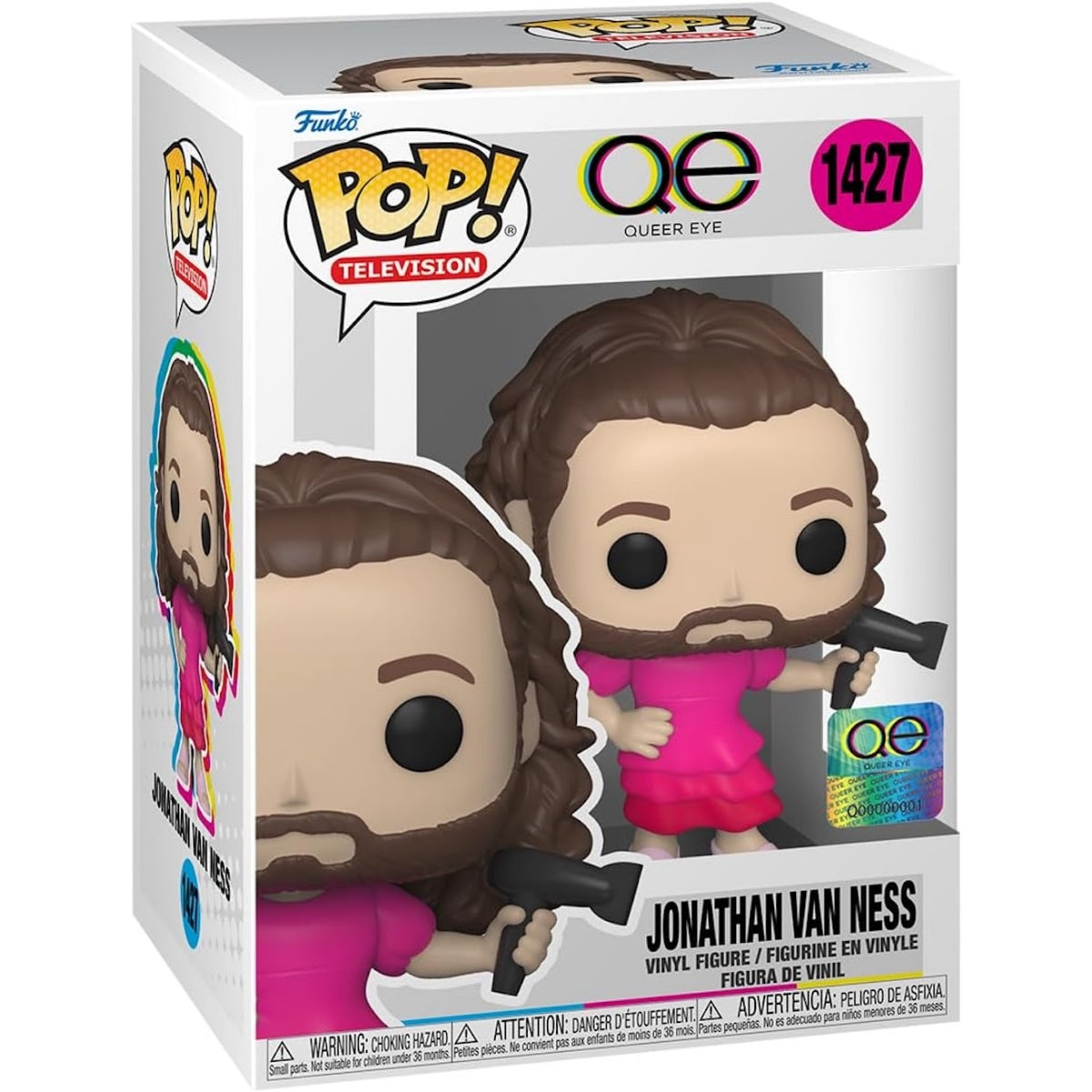 Celebrate self-expression and confidence with the Funko Pop! Television Queer Eye Jonathan Van Ness #1427 vinyl figure. Featuring JVNÕs signature style, long hair, and radiant energy, this collectible captures the grooming expertÕs iconic presence from the hit Netflix makeover series. A must-have for fans of Queer Eye and Funko collectors.